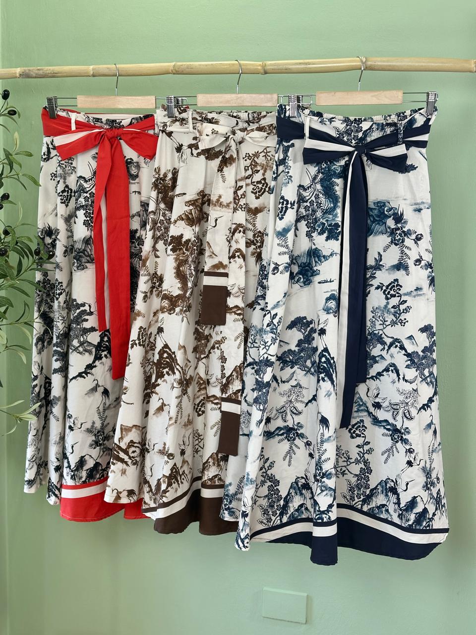 Available in classic navy, expresso brown, and vibrant red, this piece pairs beautifully with simple tops, crisp blouses, or knit tanks for a chic, feminine look.