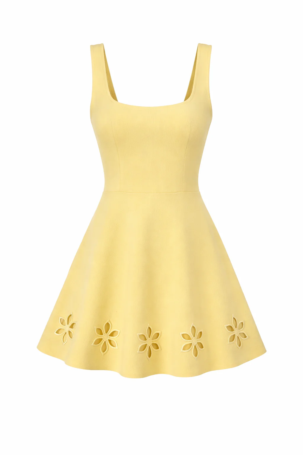 Meet your new sunshine staple — the Malena Mini Dress. Designed in a soft, buttery yellow hue, this effortlessly feminine piece features a flattering square neckline and a fitted bodice that flows into a playful A-line skirt. The standout detail? Delicate floral cutouts along the hem that add a subtle, romantic touch while keeping the look fresh and unique.